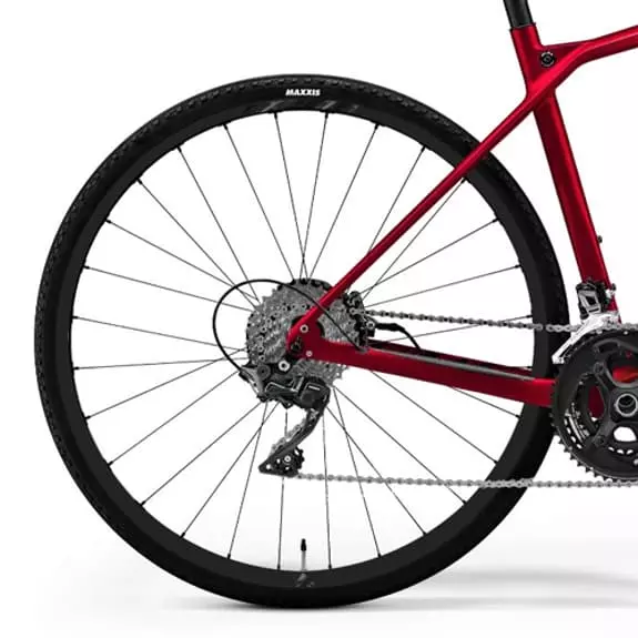 La Merida Silex 4000 gravel bike ha una geometria ispirata alle più moderne MTB, combinata con un telaio da strada ed è la bici più versatile che Merida abbia da offrire. Infatti, il Silex ha creato un nuovo concetto all’interno del marchio, aprendo un intero nuovo mondo di possibilità per chi cerca avventura e divertimento su due ruote. Con esso è possibile combinare piste, strade e sentieri poiché è preparato per adattarsi a tutti gli ambienti. Il suo design unico M.O.R.E. Innovation rende la Silex una bicicletta unica. Un ibrido tra MTB e strada, con l’unico obiettivo di essere la bici più versatile. Il tubo di sterzo sovradimensionato è una delle sue caratteristiche più significative. È progettato per offrire una posizione di guida eretta e confortevole, ma anche per evitare di avere rondelle tra l’attacco manubrio e i cuscinetti. Il telaio Silex è progettato per adattarsi a ruote da 700 e da 27.5″. Lo spazio lasciato dalla forcella permette di montare copertoni da 2.2″ e ruote da 27”5″, come se fosse una MTB. L’idea è quella di permetterti di adattare la bici all’uso che più ti conviene. Il telaio è anche predisposto per il montaggio di parafanghi, un accessorio indispensabile per le giornate invernali o se abbiamo intenzione di utilizzare la Silex come mezzo di trasporto in città.
