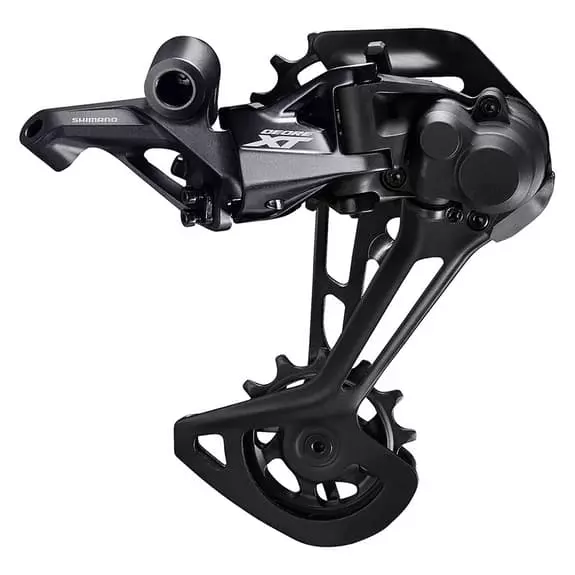Il cambio Shimano Deore XT GS M8100 12V raggiunge un nuovo livello di silenziosità della trasmissione grazie alla tensione ridotta nella posizione di marcia bassa e alla maggiore ammortizzazione nella gabbia della puleggia. Le pulegge più grandi da 13D aumentano l’efficienza e la gestione della catena, e la compatibilità con la nuova cassetta SHIMANO a 12v aumenta la gamma dei rapporti.