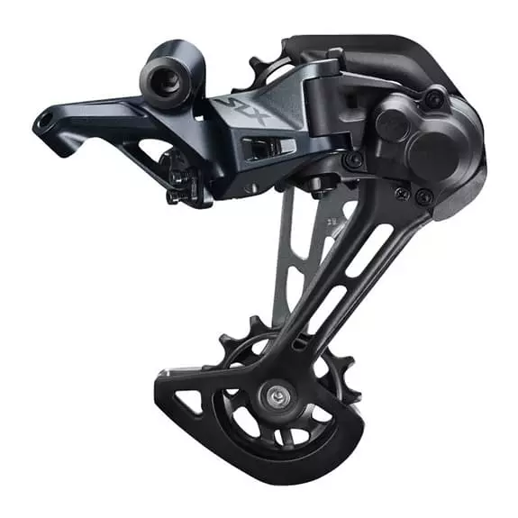 Lo Shimano Shimano SLX M7120 12v Shadow+ SGS DIR 45D offre prestazioni di cambio avanzate con meno stress sulla posizione di cambiata bassa e un ulteriore ammortizzatore nella scatola della puleggia. Le pulegge 13D più grandi aumentano l’efficienza e la gestione della catena, mentre la compatibilità con i nuovi pocchi pignoni a 12 velocità Shimano aumenta il range.