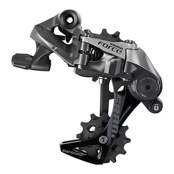 Il cambio SRAM Force 1 11V tipo 3.0 gabbia lunga è compatibile con sistemi da 11 velocità. È rapido, silenzioso e dispone di un sistema di frizione che evita che la catena si allenti, mentre favorisce il suo scorrimento silenzioso e sicuro. Con tutte le tecnologie aggiuntive, è stato possibile mantenere un peso inferiore ai 300 g.