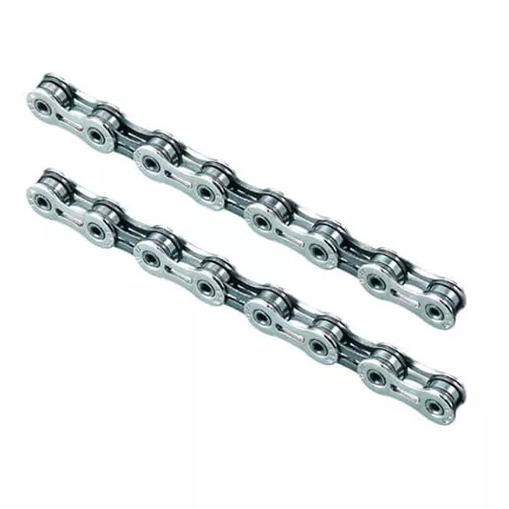La catena FSA K-Force WE del nuovo gruppo elettronico WE è progettata per offrire ottimi risultati, un funzionamento silenzioso e una grande durata. Le spine sono cave e la catena ha un trattamento nichelato con un look di alta qualità.