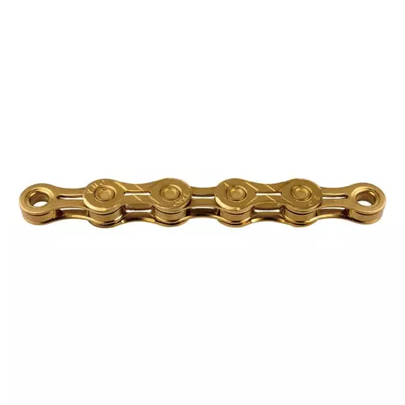Catena KMC X-11 EL Oro 114 maglie rinforzate Top performance per biciclette da strada, con maglie laterali interne ed esterne di peso ridotto.